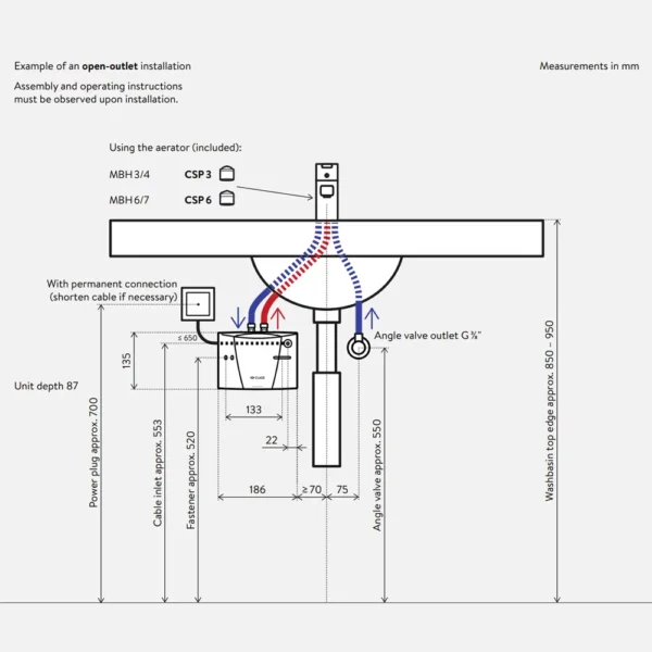 -Maksimalna temperatura i protok zavise od uslova na mestu instalacije. Da bi se postigla prijatna temperatura, moguce je povecati ili smanjiti protok vode unutar bojlera