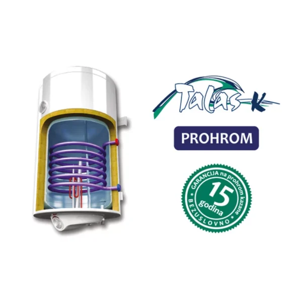 - Kombinovani bojleri TALAS K proizvode se sa izmenjivačem toplote koji zagreva vodu povezivanjem na sistem centralnog kotlovskog grejanja ili sunčanih kolektora.