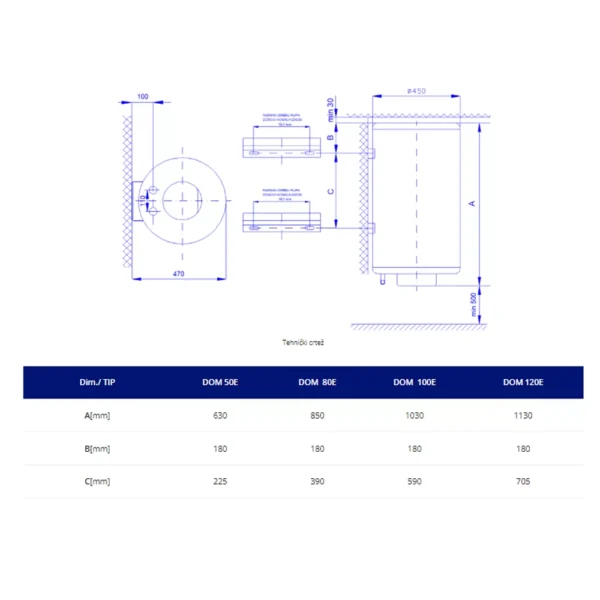 Kategorien: 100L, 2 kW, Brend, Desno, Dom Pančevo, Materijal kazana, Montiranje, Način ugradnje, Priključak, Prohrom (Inox), Snaga, Vertikalno, Zapremina bojlera, Zid